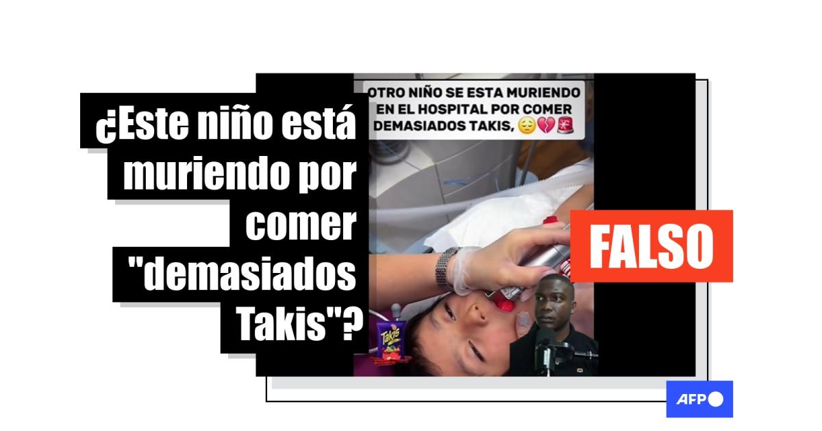 “Otro niño gravemente en el hospital por comer takis”, dicen publicaciones en Facebook, Instagram, Threads y TikTok que comparten un video de un niño siendo atendido por médicos.