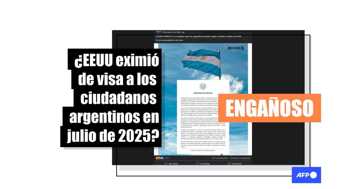 “ULTIMO MINUTO: Se confirmó que los argentinos podrán viajar a Estados Unidos sin VISA. Si, sin necesidad de una visa”, dice una de las entradas en Facebook (1, 2), que adjunta la imagen de un comunicado oficial de la oficina del presidente de Argentina.