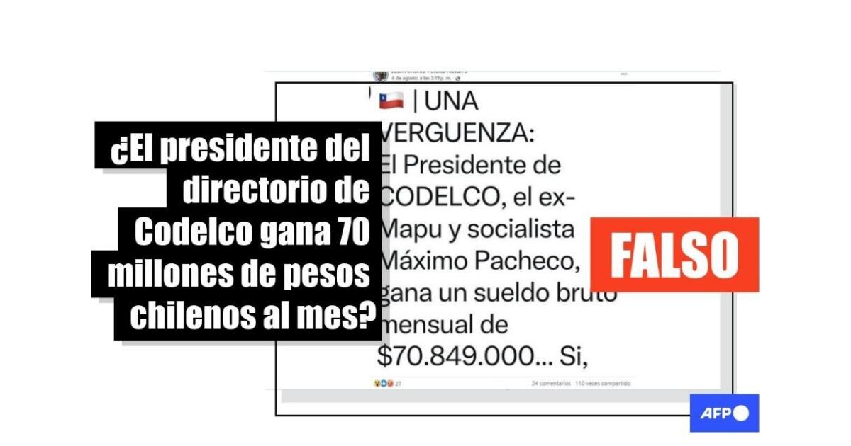 “UNA VERGUENZA: El Presidente de CODELCO, el ex-Mapu y socialista Máximo Pacheco, gana un sueldo bruto mensual de $70.849.000... Si, leíste bien, más de 70 palos mensuales”, señalan publicaciones en Facebook y X .
