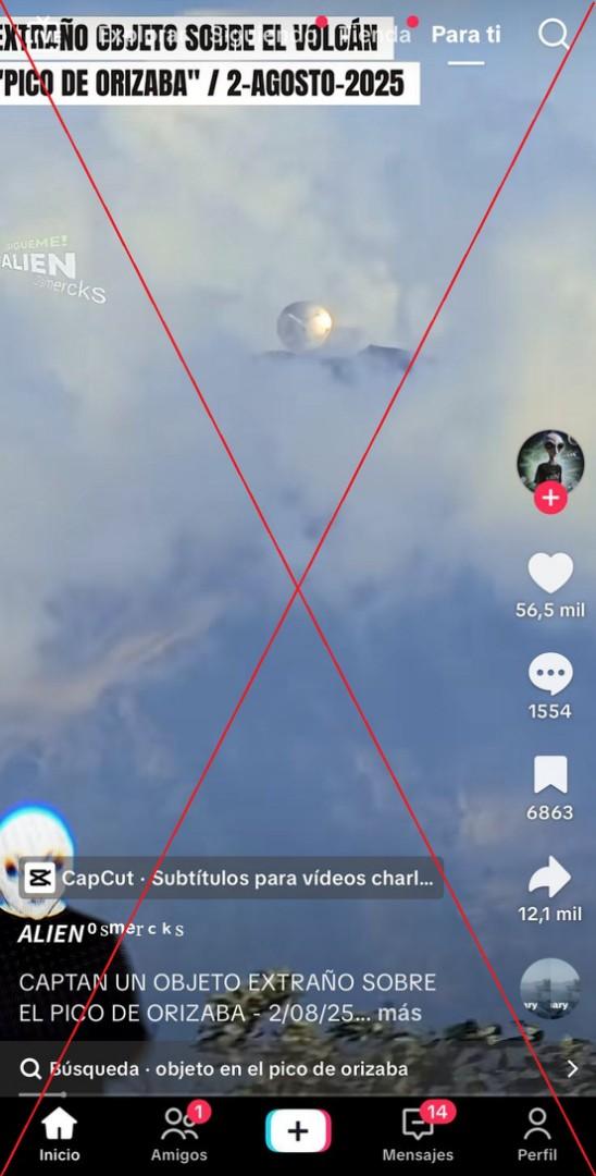 En la cima del volcán inactivo Sierra Negra, en México, junto al Pico de Orizaba, se encuentra el Gran Telescopio Milimétrico Alfonso Serrano, una instalación científica dedicada al estudio del cosmos. Desde el 2 de agosto de 2025, un video que muestra un objeto esférico en esa zona se ha compartido más de 140.000 veces en redes sociales con la afirmación errónea de que se trata de un objeto volador no identificado (ovni). En realidad, el objeto corresponde a este telescopio, construido entre 2001 y 2010.