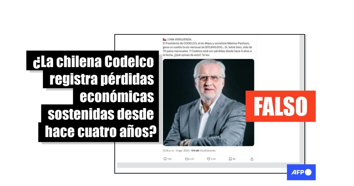Es falso que Codelco pierde dinero desde 2021 y que su presidente cobra 70 millones de pesos chilenos