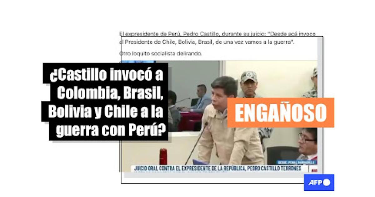 “LO ÚLTIMO: El expresidente de Perú, Pedro Castillo, en juicio: ‘Desde acá invoco a Petro y al presidente de Chile, Bolivia, Brasil de una vez vamos a la guerra’”, señalan usuarios al compartir el video en X, Facebook, Instagram, Threads y TikTok.