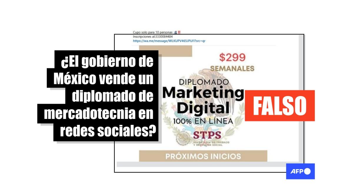 Consultada sobre el diplomado de mercadotecnia digital, el 15 de agosto de 2025, la Unidad de Trabajo Digno respondió a la AFP en un correo que “la Secretaría del Trabajo y Previsión Social no promueve, no avala, no certifica y no registra diplomados, seminarios y talleres”.