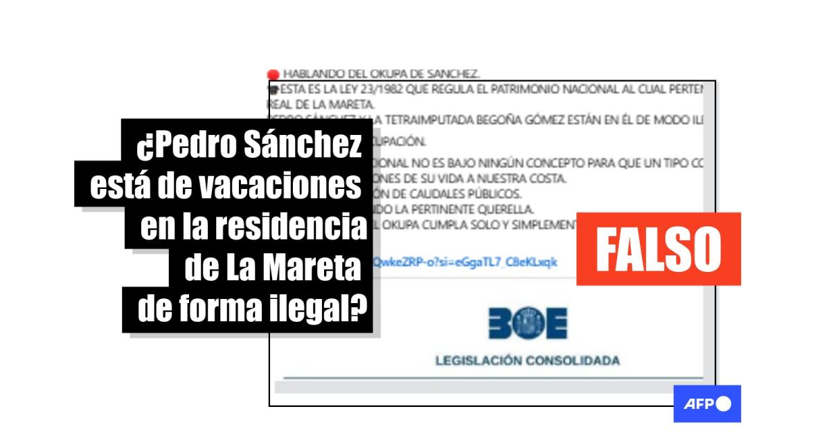 Un mensaje compartido en Facebook asegura: “HABLANDO DEL OKUPA DE SÁNCHEZ. ESTA ES LA LEY 23/1982 QUE REGULA EL PATRIMONIO NACIONAL AL CUAL PERTENCE EL PALACIO REAL DE LA MARETA. PEDRO SÁNCHEZ Y LA TETRAIMPUTADA BEGOÑA GÓMEZ ESTÁN EN ÉL DE MODO ILEGAL”.