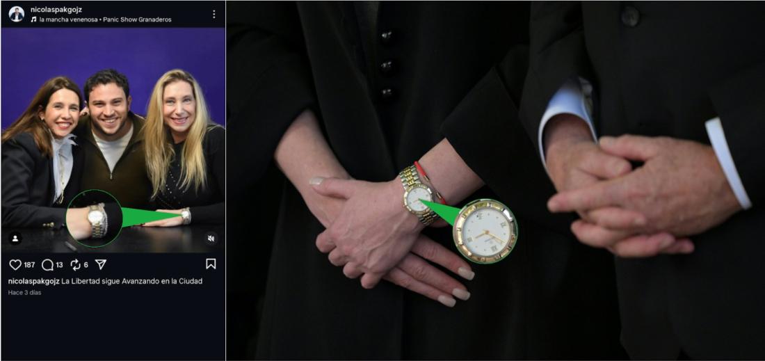 La imagen viral fue publicada el 16 de agosto de 2025 en la cuenta en Instagram del presidente de la Agencia de Administración de Bienes del Estado (AABE), Nicolás Pakgojz. Allí se ve que la hermana del presidente lleva un reloj en su mano izquierda.