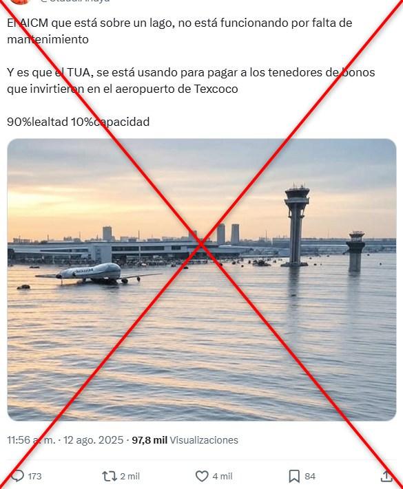 La foto del aeropuerto de Ciudad de México inundado tras las lluvias de agosto de 2025 se creó con IA