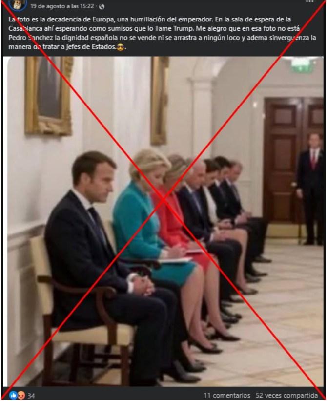 En la imagen viral tampoco figuran el canciller alemán, Friedrich Merz; el primer ministro británico, Keir Starmer; el presidente finlandés, Alexander Stubb; ni el secretario general de la OTAN, Mark Rutte, quienes sí estuvieron en la reunión con Trump y llevaban gafas. Tampoco corresponden las tres mujeres que aparecen en la foto: no son líderes europeas presentes en el encuentro, como Ursula von der Leyen, presidenta de la Comisión Europea, o la primera ministra italiana, Giorgia Meloni.
