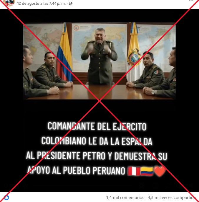 Sin embargo, el video del comandante colombiano apoyando a Perú no es auténtico.