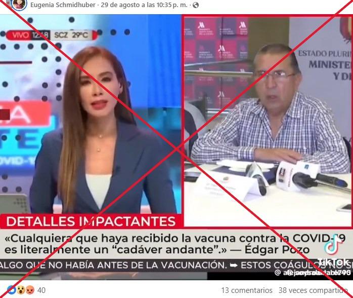 “El reconocido doctor Edgar Pozo da la voz de alarma. A todo aquel que recibió la vacuna contra el covid le amenaza un peligro mortal”, se oye decir a una presentadora de televisión en una grabación difundida en Facebook, Instagram, YouTube y TikTok.