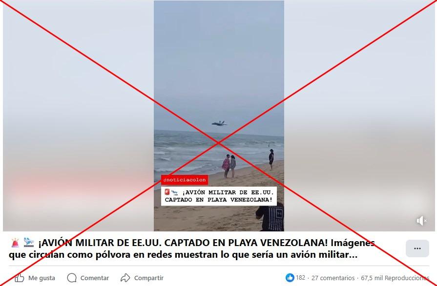 Sin embargo, el metraje viral no muestra un avión militar estadounidense en una playa venezolana.