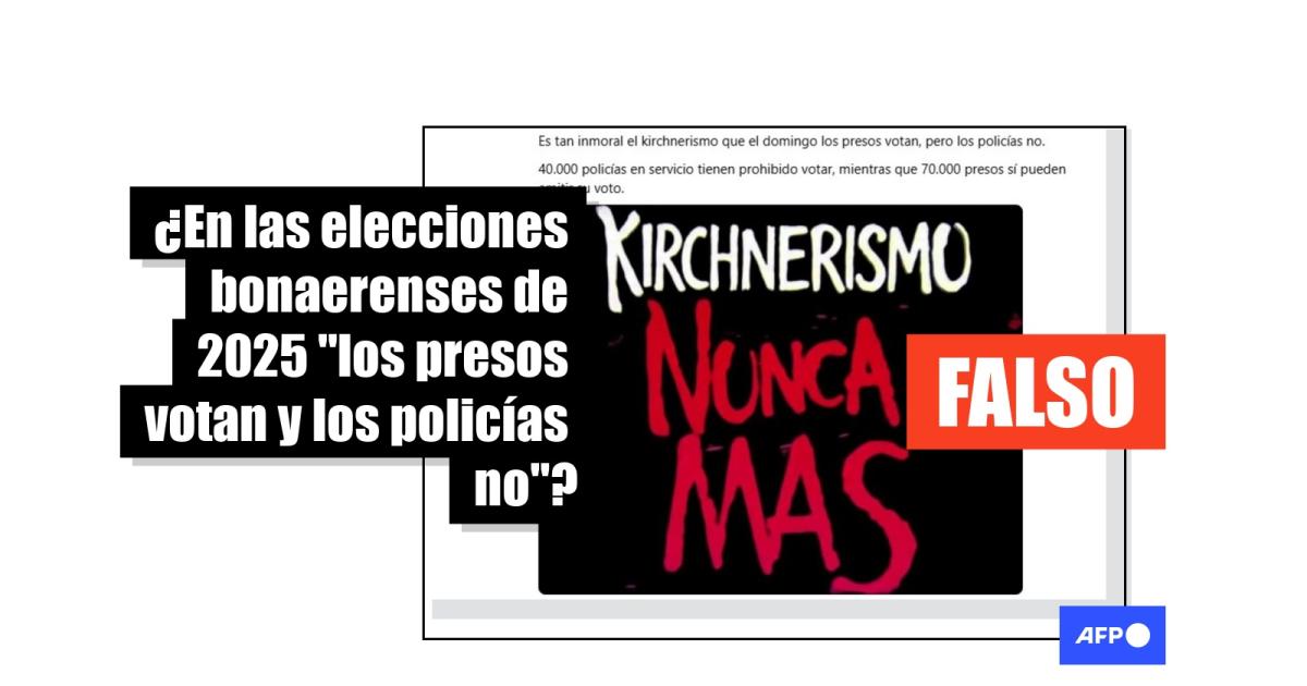 “Es tan inmoral el kirchnerismo que el domingo los presos votan, pero los policías no. 40.000 policías en servicio tienen prohibido votar, mientras que 70.000 presos sí pueden emitir su voto”, dicen publicaciones difundidas en X, Facebook, Threads, Instagram y TikTok.