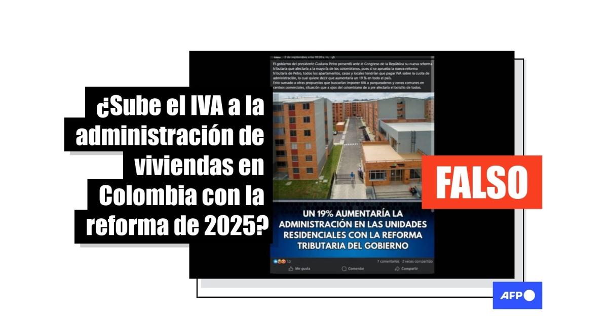 “Un 19% aumentaría la administración en las unidades residenciales con la reforma tributaria del gobierno”, dice la imagen compartida en Facebook y X.