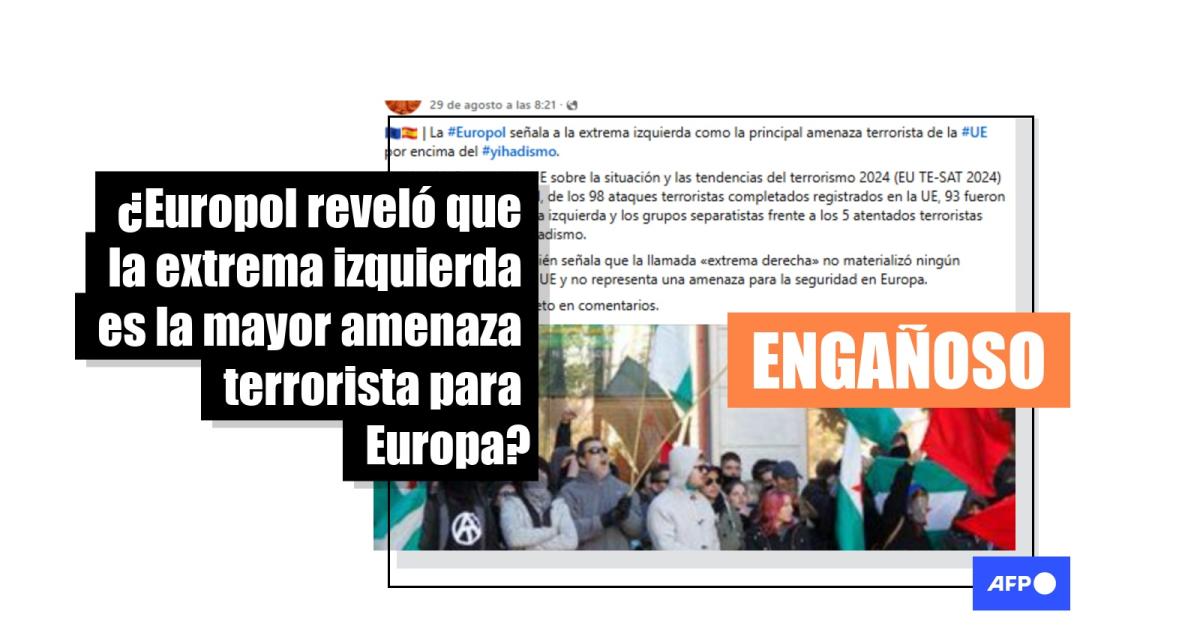 El informe de 2025 de Europol fue publicado el 19 de agosto y, días más tarde, varias publicaciones virales utilizaron el estudio del 2024, con datos del año previo, para lanzar las afirmaciones citadas sobre la amenaza terrorista de la “extrema izquierda”. Pero el documento antiguo tampoco recoge esto.