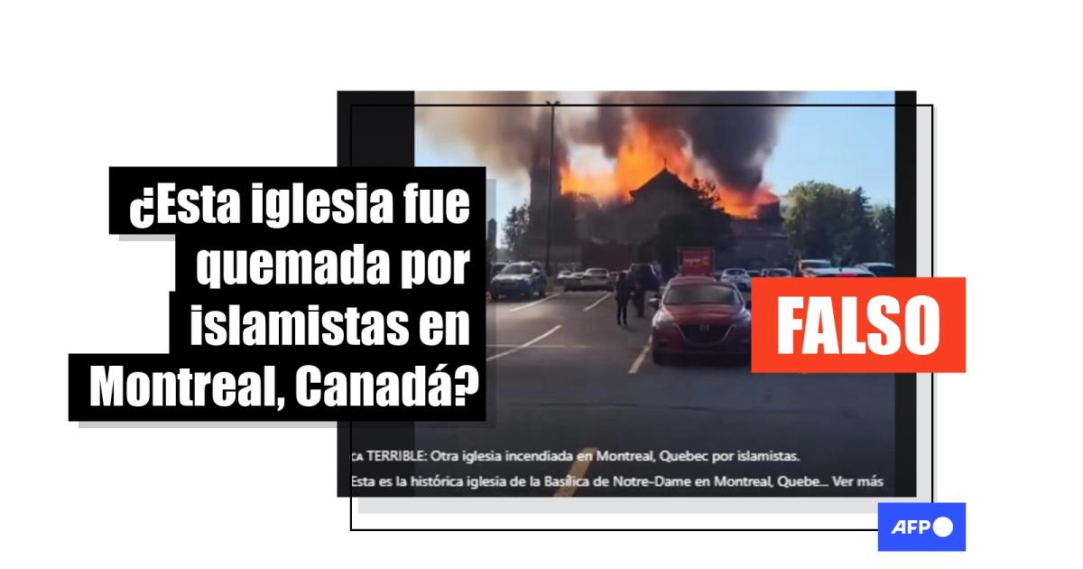 “Otra iglesia incendiada en Montreal, Quebec (Canada) por islamistas; Esta es la histórica iglesia de la Basílica de Notre-Dame en Montreal, Quebec. ¡El cristianismo bajo ataque en Canadá!”, se lee sobre un vídeo del incendio de una iglesia compartido en Facebook.