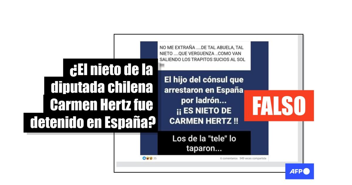 “NO ME EXTRAÑA ....DE TAL ABUELA, TAL NIETO ....QUE VERGUENZA..COMO VAN SALIENDO LOS TRAPITOS SUCIOS AL SOL. El hijo del cónsul que arrestaron en España por ladrón... ¡¡ ES NIETO DE CARMEN HERTZ !!”, señala una imagen compartida en Facebook, Instagram y X.
