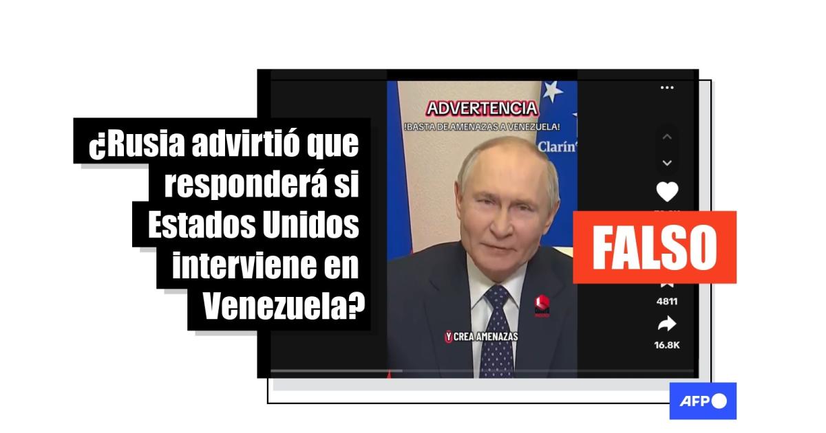 “Es inaceptable que Estados Unidos amenace a Venezuela. La presión de Washington sobre Caracas es descarada (...) Venezuela cuenta con todo el apoyo de Rusia. Si Estados Unidos interviene militarmente a Venezuela, nosotros nos veremos en la obligación de neutralizar esa amenaza”, dice el audio y la traducción de unas declaraciones atribuidas a Putin, compartidas en Facebook (1, 2), TikTok, Instagram y X.