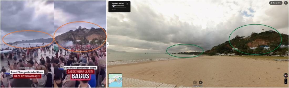 Una búsqueda en Google Maps llevó a ubicar la playa tunecina en la que se grabó el metraje original, con varios elementos que coinciden con el paisaje de la grabación.