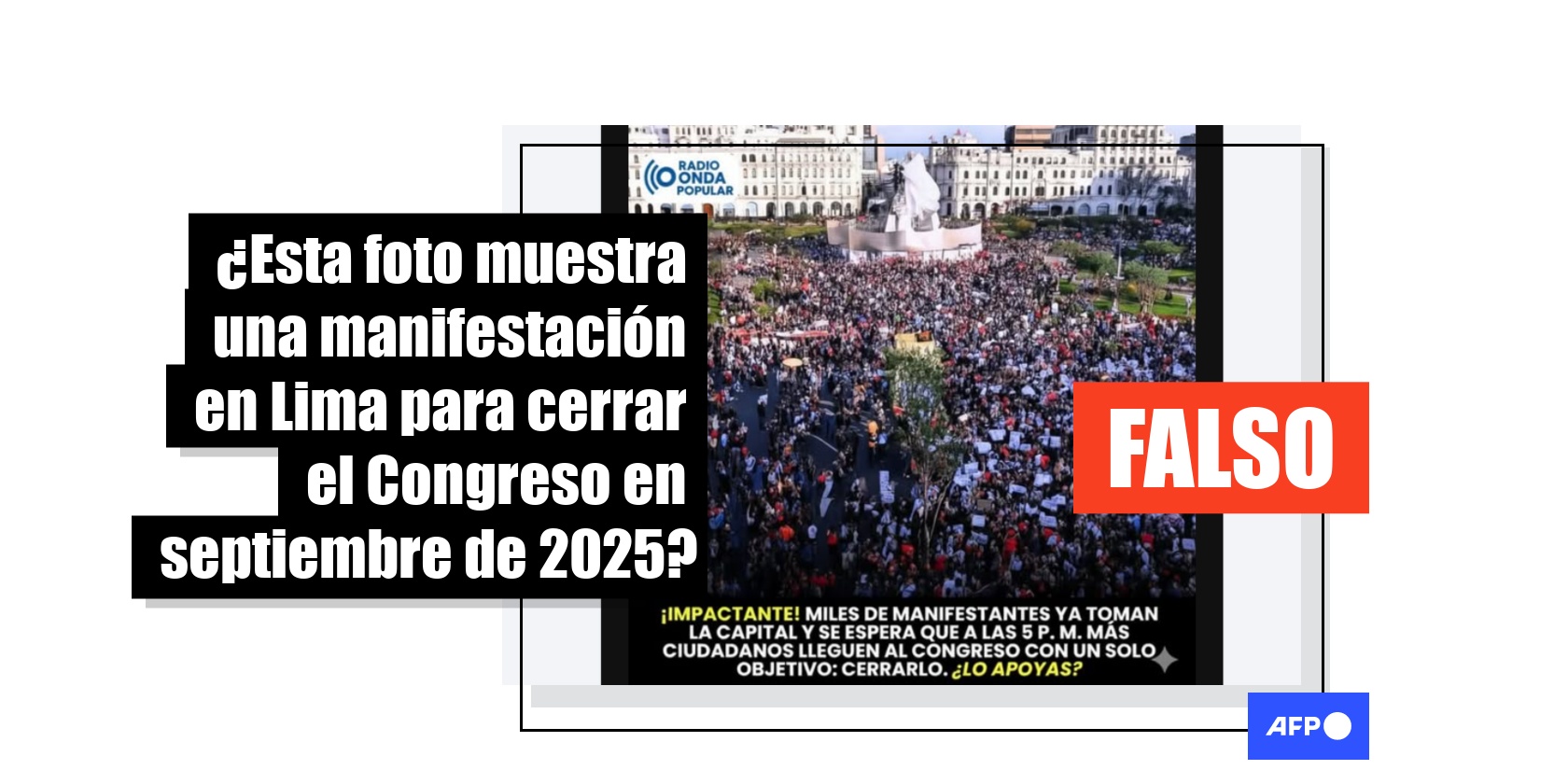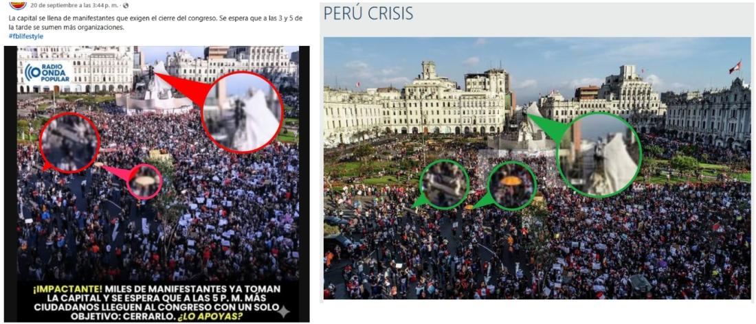 En septiembre de 2025, Lima presenció numerosas protestas contra el gobierno de Dina Boluarte y el Congreso, encabezadas principalmente por jóvenes. En ese contexto, más de 7.000 usuarios de redes sociales han difundido una imagen de la plaza San Martín, en el centro de la capital peruana, con una amplia afluencia de personas, afirmando que se trata de manifestantes dispuestos a “cerrar” el Parlamento. Sin embargo, la fotografía fue tomada en noviembre de 2020, durante las masivas protestas contra el entonces presidente transitorio Manuel Merino.
