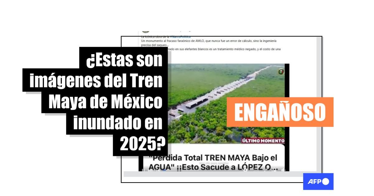 Las imágenes, que también han circulado en Facebook, Threads, Instagram y TikTok, muestran el mensaje “Perdida Total TREN MAYA Bajo el AGUA ¡¡Esto Sacude a LÓPEZ O…”.