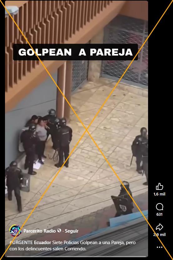 “#URGENTE Ecuador Siete Policias Golpean a una Pareja, pero con los delincuentes salen Corriendo”, dice una de las publicaciones que comparten el video en Facebook.