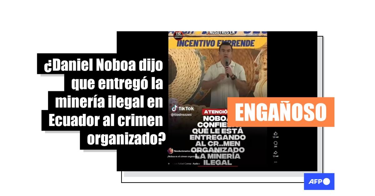 Ecuador enfrenta la violencia de numerosas bandas criminales, lo que ha motivado políticas de mano dura por parte del gobierno de Daniel Noboa. Desde el 17 de octubre de 2025, en redes sociales se ha compartido más de 17.000 veces un video donde el presidente parece decir en un acto oficial que entregó la minería ilegal al crimen organizado. Pero sus declaraciones fueron editadas para simular la frase. El mandatario dijo la palabra “entregando”, y luego corrigió a “enterrando”.
