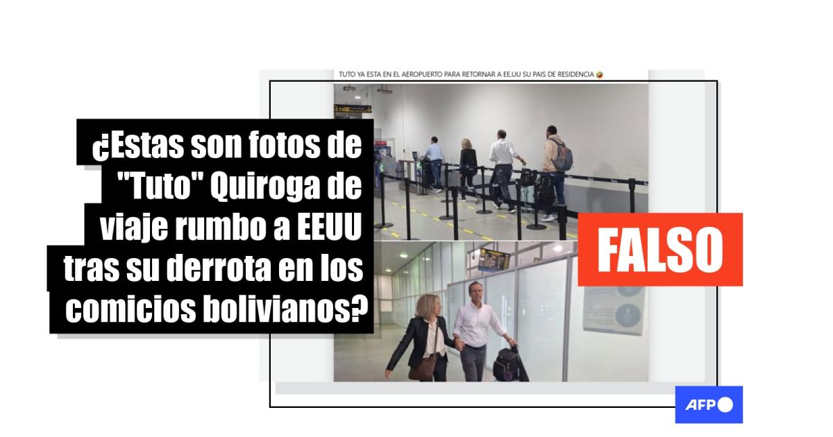 Bolivia celebró la segunda vuelta presidencial el 19 de octubre de 2025, donde el candidato Rodrigo Paz derrotó a Jorge “Tuto” Quiroga. Desde entonces, fotos compartidas más de 1.000 veces por usuarios en redes sociales muestran a Quiroga en un aeropuerto, con la afirmación de que viajó a Estados Unidos tras perder los comicios. Pero esto es falso. En realidad, las imágenes corresponden a su viaje a Cochabamba desde Santa Cruz durante la jornada electoral. El equipo de prensa de Quiroga confirmó a la AFP que a la fecha de publicación de este artículo el excandidato seguía en el país andino.