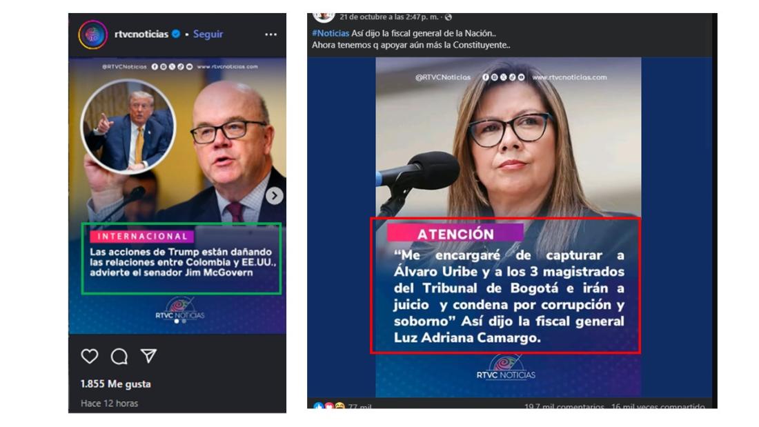 Personas inescrupulosas están copiando nuestras imágenes de RTVC Noticias y Radio Nacional para difundir información falsa en grupos de Facebook.