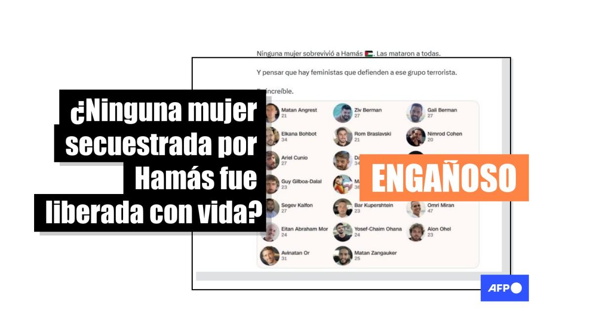 Tras acordar un alto al fuego con Israel, el 13 de octubre de 2025, el grupo islamista palestino Hamás liberó a los últimos 20 rehenes con vida a quienes secuestró hace dos años, cuando estalló la guerra en la Franja de Gaza. Desde entonces, en redes sociales ha sido compartida más de 46.000 veces la afirmación de que Hamás sólo liberó a hombres y que ninguna de las mujeres que secuestró sobrevivió. En realidad, en treguas previas, el grupo islamista liberó a varios de los 251 rehenes, incluidas decenas de mujeres.
