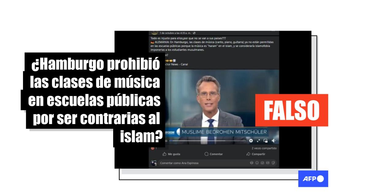 En junio de 2025, un noticiero de la televisión alemana informó que algunos estudiantes musulmanes participaron en actos discriminatorios contra sus compañeros en Hamburgo. En ese contexto, usuarios en redes sociales han compartido cientos de veces un video de ese informe televisivo junto con la afirmación de que las escuelas públicas de esa ciudad prohibieron las clases de música por su supuesta incompatibilidad con el islam. Sin embargo, el informe en cuestión no menciona tal prohibición, y las autoridades locales negaron el supuesto veto.