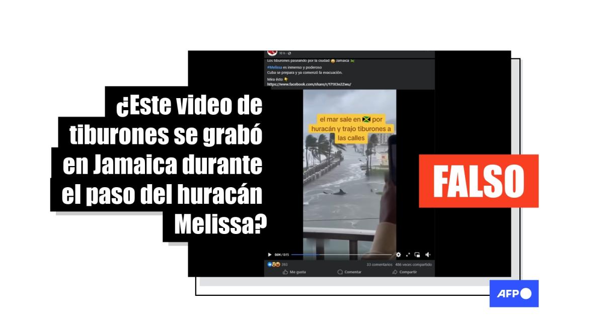 Melissa tocó tierra en Jamaica el 27 de octubre de 2025 como huracán de categoría 5 y se convirtió en la tormenta más severa que ha afectado a la isla desde que se tienen registros meteorológicos. Desde entonces, un video de tiburones en una calle inundada circula más de 2.400 veces en redes sociales, junto con la afirmación de que corresponde a esa tormenta. Sin embargo, la secuencia fue generada con inteligencia artificial (IA).