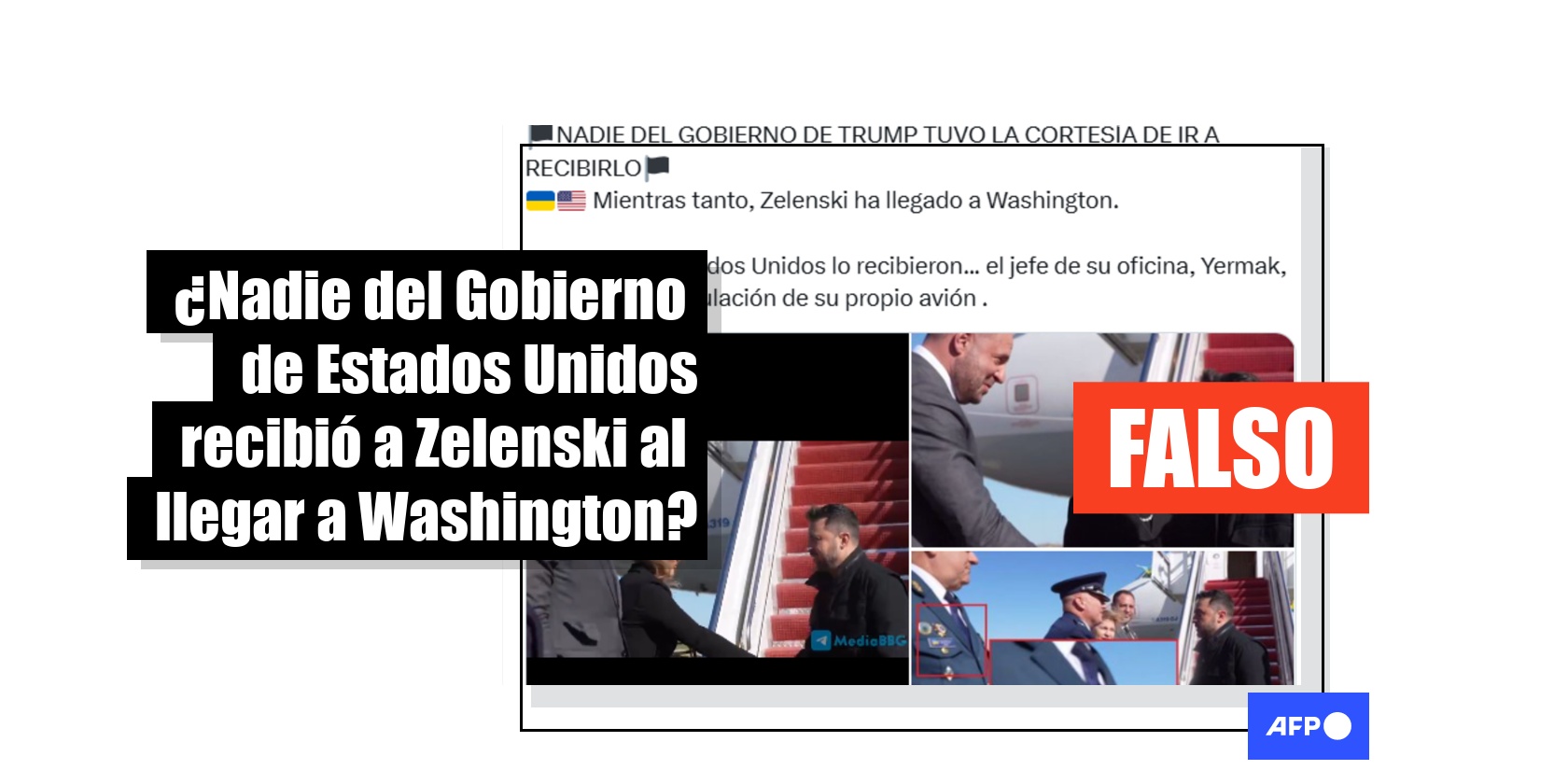 El 17 de octubre de 2025, el presidente de Ucrania, Volodímir Zelenski, se reunió con su homólogo estadounidense, Donald Trump, en la Casa Blanca. Las imágenes de su llegada al país circularon en redes sociales decenas de veces con la afirmación de que los pilotos del avión de Zelenski fingieron ser la comitiva de recepción, porque no habría ido a darle la bienvenida “nadie del gobierno de Trump”. Pero esto es falso. Aparte del jefe de gabinete del ucraniano, que había llegado en un viaje previo, el resto de la recepción la componían políticos y militares de ambos países.