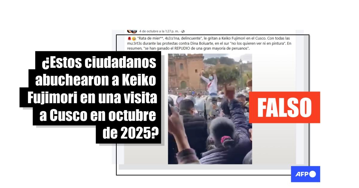 Keiko Fujimori anunció el 30 de octubre de 2025 que postulará por cuarta vez a la Presidencia de Perú en las elecciones de 2026. A puertas de la campaña electoral, más de 20.000 usuarios en redes sociales han compartido desde el 3 de octubre un video de la candidata siendo abucheada en la plaza principal de Cusco, como si le increparan por las muertes ocurridas en las protestas contra la expresidenta Dina Boluarte en 2022 y 2023. Sin embargo, la secuencia fue grabada en 2021 durante la campaña de Fujimori hacia la segunda vuelta en las elecciones de ese año.