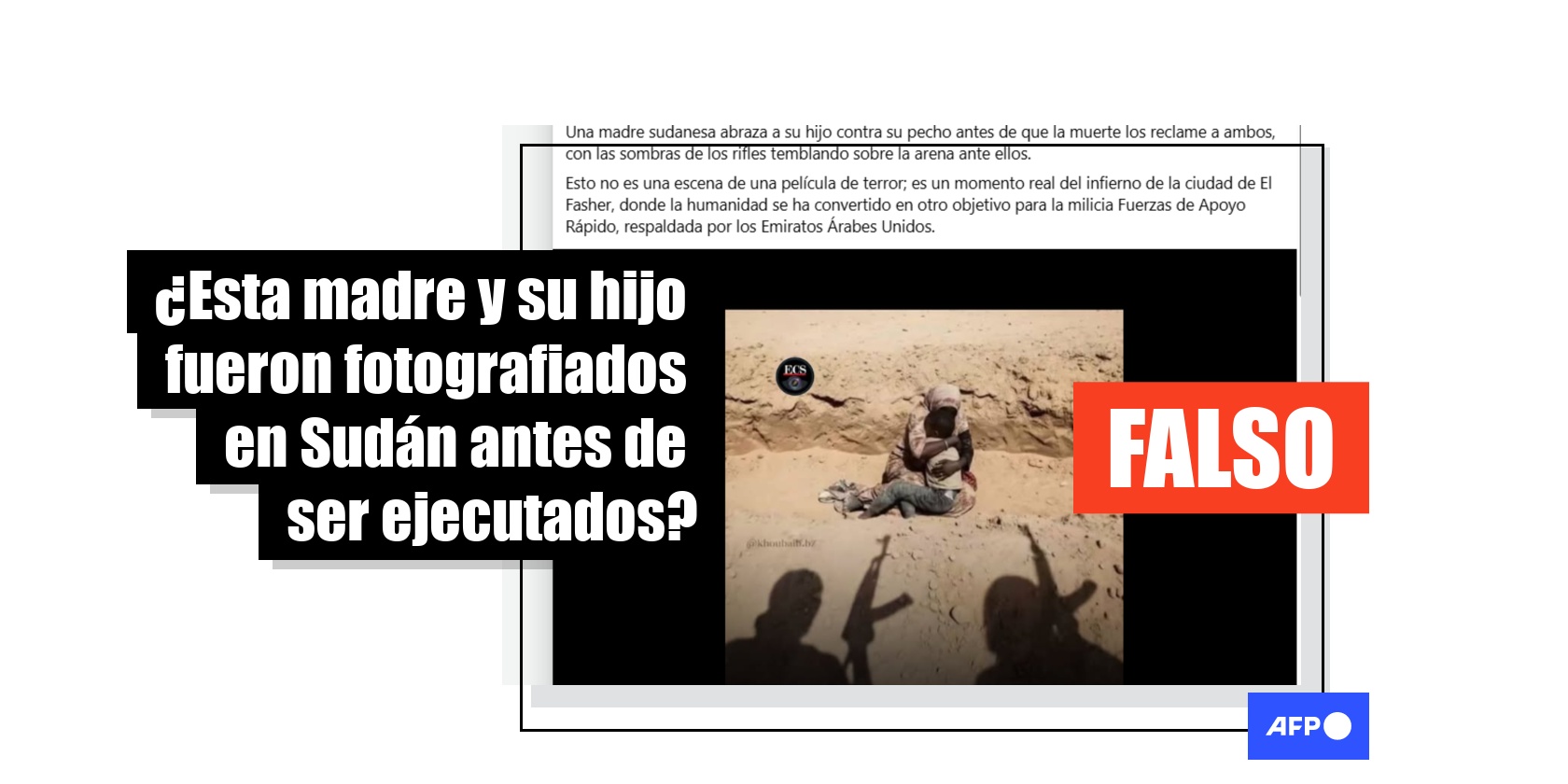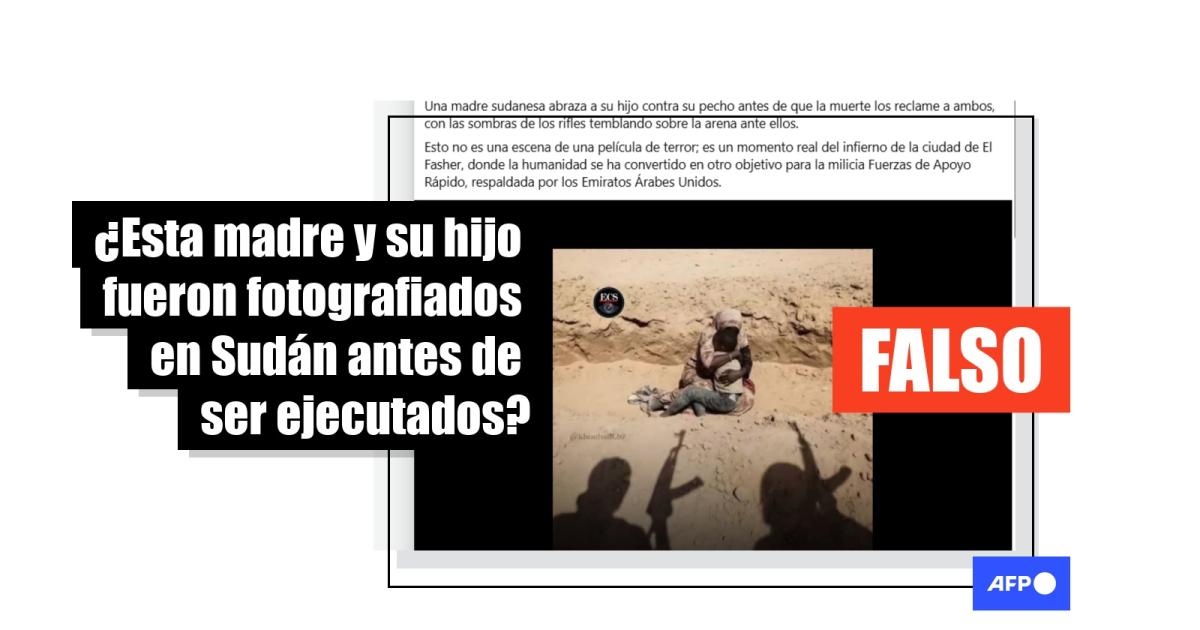 A fines de octubre de 2025, paramilitares tomaron la ciudad sudanesa de El Fasher, bastión del ejército regular en la región occidental del país, lo que provocó desplazamientos masivos de la población y acusaciones de asesinatos en masa. Desde entonces, más de 26.000 usuarios de redes sociales han compartido una foto que supuestamente muestra a una madre con su hijo en brazos frente a la sombra de dos hombres armados, con la afirmación de que fueron fotografiados previo a ser “ejecutados”. Sin embargo, la imagen fue generada por inteligencia artificial.