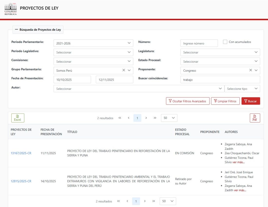 Otra pesquisa en la plataforma congresal sobre las propuestas de parlamentarios del mismo partido de Jerí, Somos Perú, restringida al período de su gestión como presidente, encontró que se presentaron cinco iniciativas sobre la incorporación de trabajadores de entidades públicas a nuevos regímenes laborales (1, 2), pero ninguno sobre la reducción de la jornada.