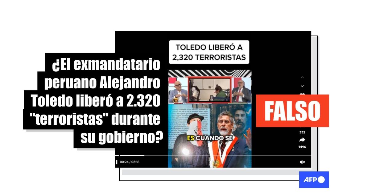 A una consulta de la AFP, el Ministerio de Justicia informó en octubre de 2025 que durante el mandato del expresidente Toledo se liberaron a 95 personas, y no 2.320 como se asegura en el video viral.