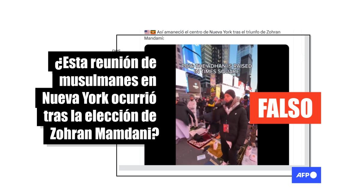 El demócrata Zohran Mamdani ganó las elecciones a la alcaldía de Nueva York el 4 de noviembre de 2025 y se convertirá en el primer alcalde musulmán de la ciudad. Tras su elección, más de 1.300 usuarios en redes sociales han compartido un video que muestra a decenas de musulmanes rezando en Times Square, con la afirmación de que celebran la victoria de Mamdani. Sin embargo, el video data de marzo, durante el comienzo del Ramadán.