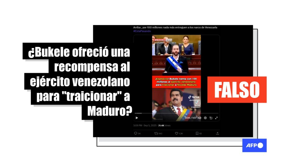 Bukele no ofreció una recompensa a militares por traicionar a Maduro; el video fue alterado con IA