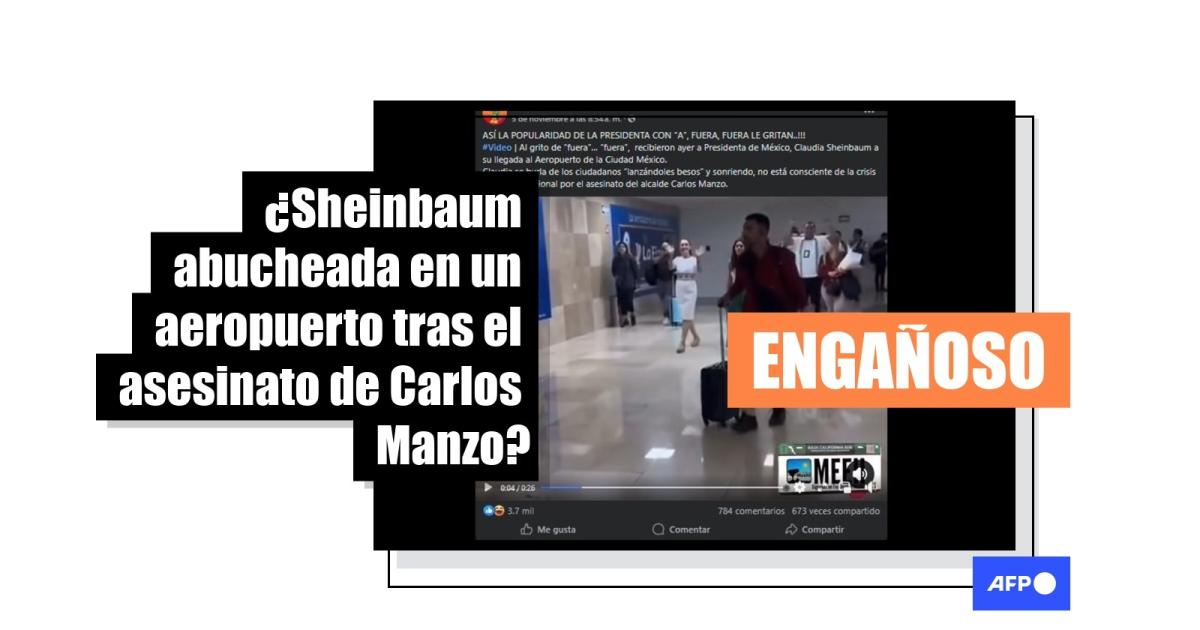 El alcalde mexicano Carlos Manzo fue asesinado el 1 de noviembre de 2025 durante un evento público. Desde entonces, un video en el que la presidenta mexicana, Claudia Sheinbaum, es abucheada por un grupo de personas en un aeropuerto ha sido compartido más de 40.000 veces en redes sociales junto con la afirmación de que fue grabado tras el homicidio del edil. Sin embargo, la secuencia es de mayo de 2024, cuando Sheinbaum hacía campaña por la Presidencia.