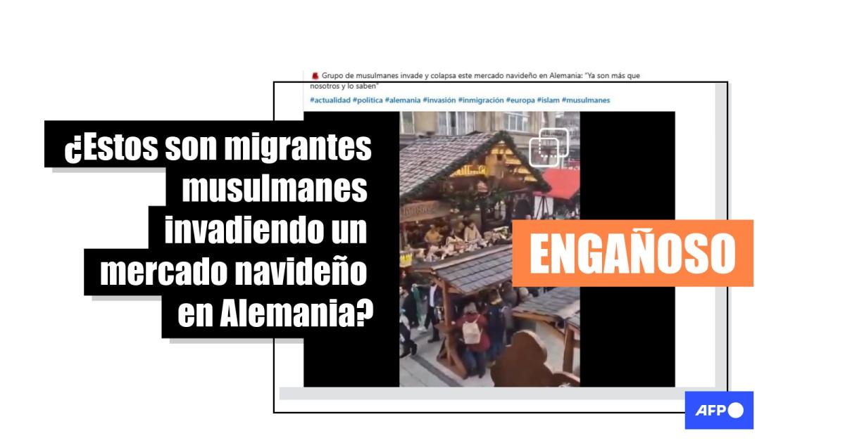 Las autoridades alemanas reforzaron la seguridad en mercados navideños luego de los ataques mortales en ellos en las ciudades de Berlín y Magdeburgo en 2016 y 2024, respectivamente. En ese contexto, en noviembre de 2025 ha sido compartido más de 4.700 veces un video en el que supuestamente migrantes musulmanes “invaden” y “colapsan” un mercado navideño en ese país europeo para mostrar que son mayoría. En realidad, se trata de personas que hicieron una marcha pacífica para festejar el derrocamiento del expresidente sirio Bashar al-Assad en diciembre de 2024, reportó la policía local.