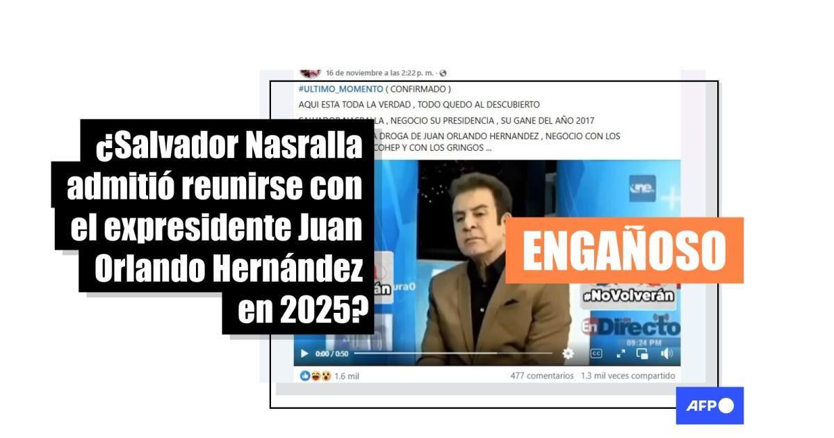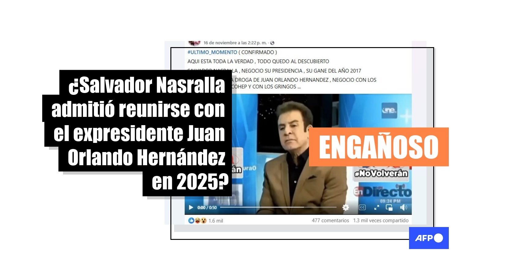 En medio de una crisis electoral y un ambiente político crispado, el 30 de noviembre de 2025 se desarrollarán las elecciones generales de Honduras. Días antes, circula en redes sociales un video del candidato presidencial del partido Liberal (PLH), Salvador Nasralla, en el que supuestamente admite que se reunió con el expresidente Juan Orlando Hernández (JOH), condenado en Estados Unidos por narcotráfico. Pero la secuencia, compartida más de 1.300 veces, está recortada y corresponde a una entrevista de 2018 sobre una reunión tras los comicios de 2013.