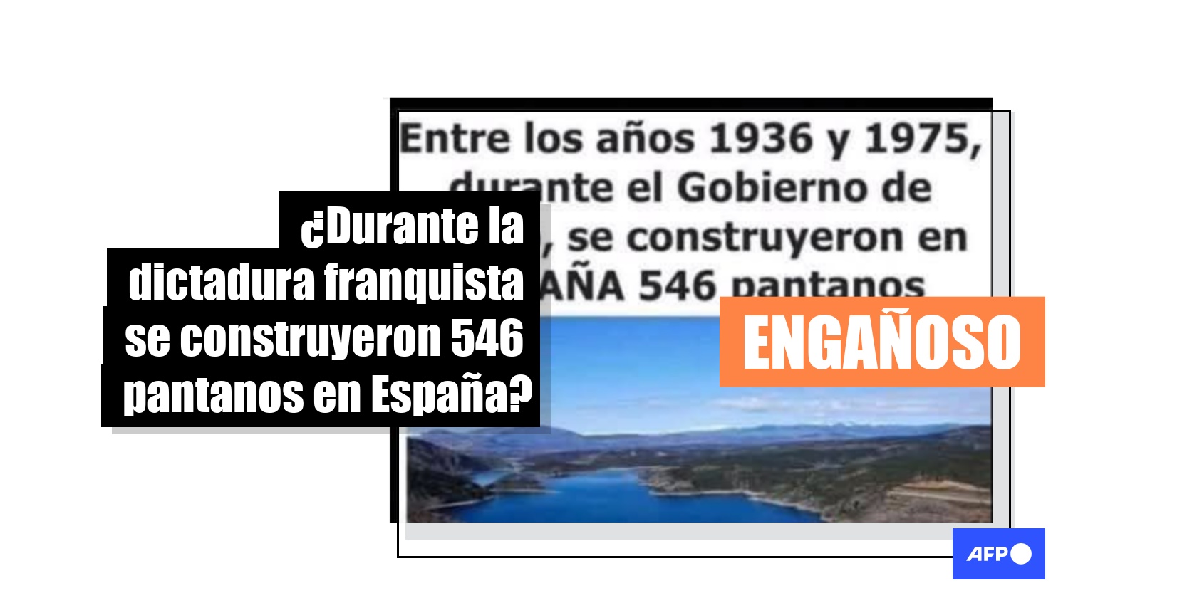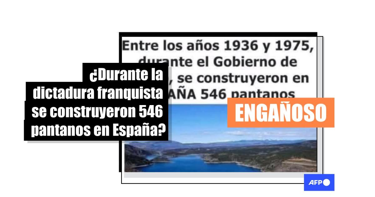 Uno de los mitos más asociados al franquismo (1939-1975) es la construcción de presas y embalses en España. Medio siglo después de la muerte del dictador Francisco Franco, que marcó el inicio de la transición a la democracia, usuarios en redes sociales aseguran que el franquismo construyó “546 pantanos”, en mensajes compartidos más de 2.600 veces desde junio de 2025. Aunque en ese período sí se desarrollaron centenares de infraestructuras hidráulicas, “muchas” de ellas se diseñaron en etapas previas al régimen, según los expertos consultados por AFP Factual.