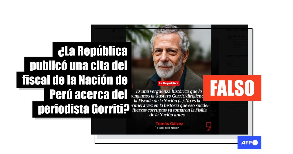 El periodista peruano Gustavo Gorriti criticó la dirección de la fiscalía de Perú en una entrevista el 14 de noviembre de 2025. En ese contexto, más de 400 usuarios de redes sociales han compartido una supuesta placa del diario La República en la que el fiscal general, Tomás Gálvez, aparentemente denuncia que Gorriti “dirige” la institución. Sin embargo, la imagen fue adulterada. La gráfica original difundida por el medio muestra en realidad una frase de Gorriti en la que critica a Gálvez.