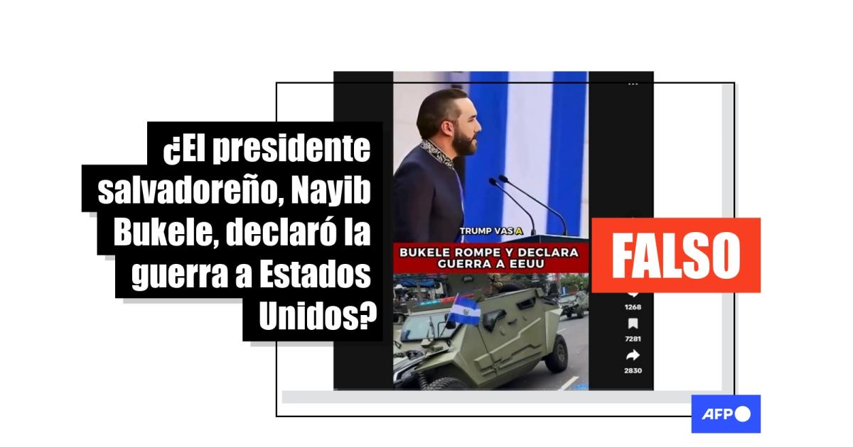 Hasta la fecha de publicación de esta verificación, Bukele no ha hecho ninguna declaración de guerra contra Estados Unidos, según consta en sus redes sociales (1, 2, 3, 4) y en los sitios web oficiales de la Presidencia salvadoreña (1, 2, 3, 4). Tampoco las Fuerzas Armadas han hecho ese anuncio (1, 2).