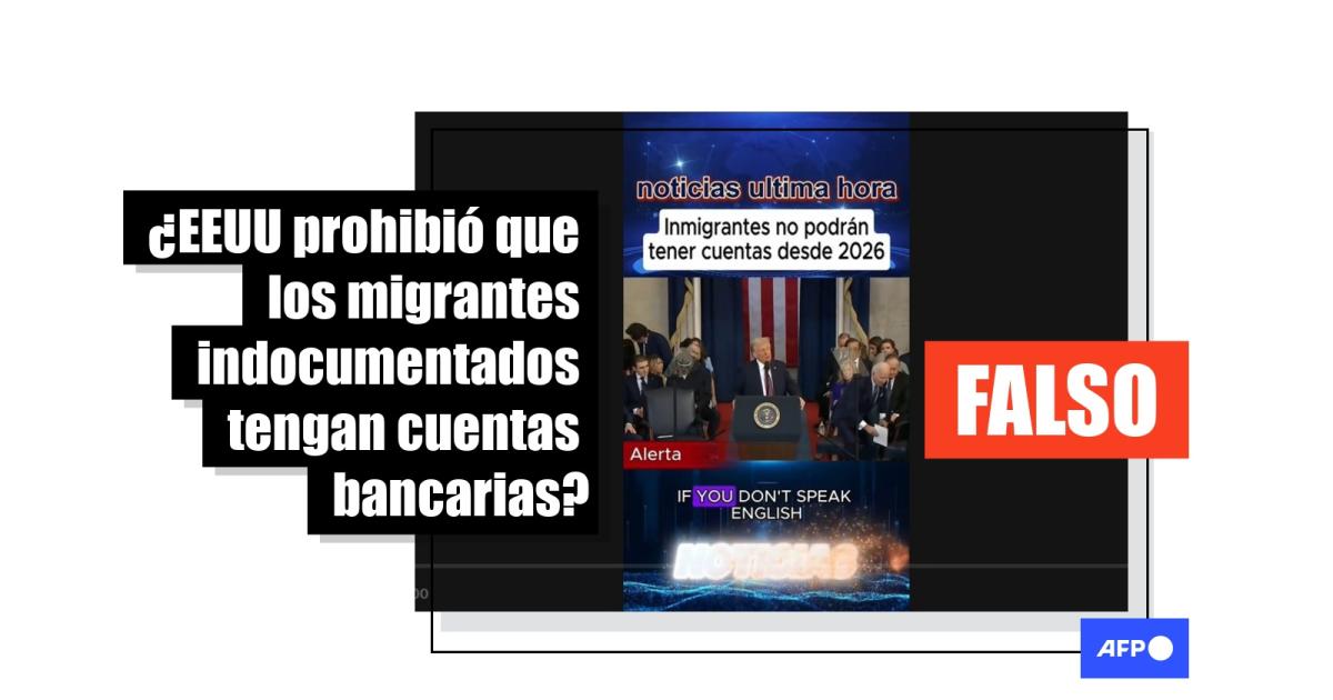 El presidente de Estados Unidos, Donald Trump, ha endurecido la política antimigratoria desde el inicio de su segundo mandato en enero de 2025. En ese contexto, desde el 26 de noviembre circula en redes sociales un video en el que se afirma que una nueva ley prohíbe a los migrantes indocumentados tener cuentas bancarias en ese país. Pero el contenido, compartido más de 124.000 veces, es falso. Al 9 de diciembre de 2025 no ha sido aprobada ninguna legislación en ese sentido y una experta confirmó a AFP Factual que no hay orden federal que lo establezca.