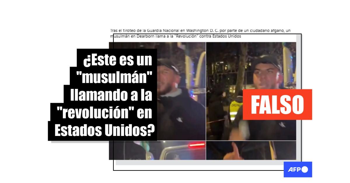 “Tras el tiroteo de la Guardia Nacional en Washington D. C. por parte de un ciudadano afgano, un musulmán en Dearborn [en Míchigan, Estados Unidos] llama a la ‘Revolución’ contra Estados Unidos”, asegura un mensaje compartido en X.