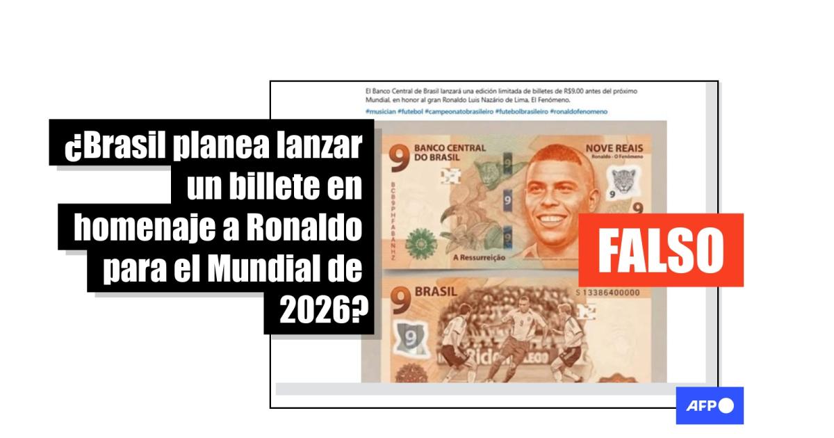 En medio de los preparativos de la selección de Brasil para el Mundial de 2026, una imagen de un supuesto billete de nueve reales con el rostro del exjugador brasileño Ronaldo fue vista por más de 4.000 usuarios en redes sociales. Las publicaciones afirman que se trata de una edición conmemorativa que el Banco Central “lanzará” antes del torneo. Sin embargo, la imagen, compartida más de 200 veces desde el 10 de diciembre de 2025, fue generada mediante inteligencia artificial (IA), y la institución desmintió la afirmación a la AFP.