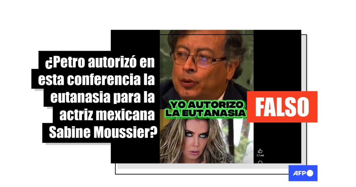 La actriz mexicana Sabine Moussier reveló en febrero de 2025 que padece neuropatía de fibras pequeñas. En ese contexto, un video que muestra al presidente colombiano, Gustavo Petro, supuestamente autorizando una “eutanasia” para la artista en su territorio, se ha compartido más de 1.000 veces en redes sociales desde diciembre. Sin embargo, la secuencia fue editada por inteligencia artificial (IA) a partir de un discurso en el que el mandatario no menciona este procedimiento. Tampoco hay ningún registro de que Moussier haya pedido su muerte asistida.