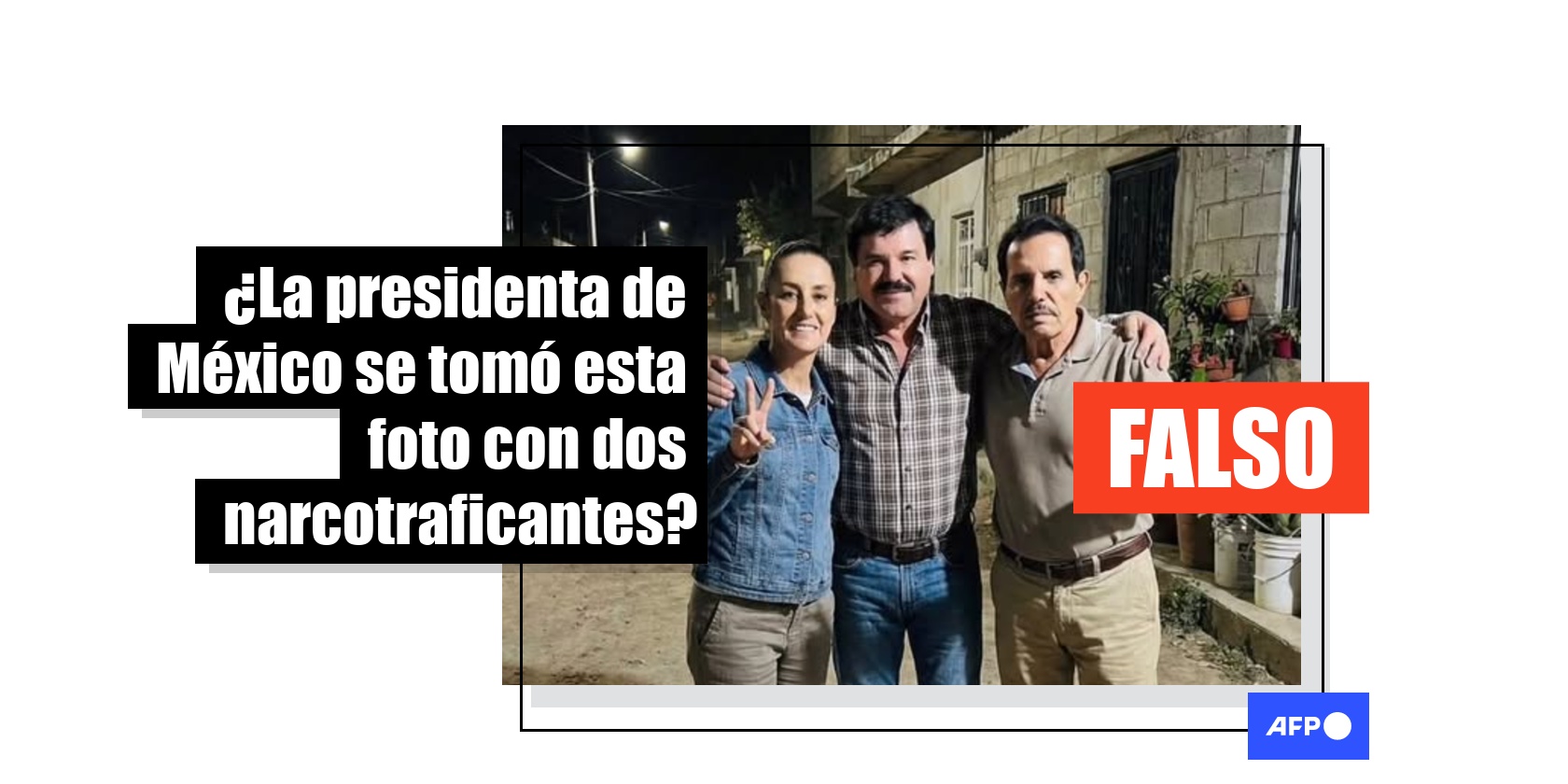 Sheinbaum no posó en una foto con los capos mexicanos “El Chapo” y “El Mayo”, imagen se hizo con IA