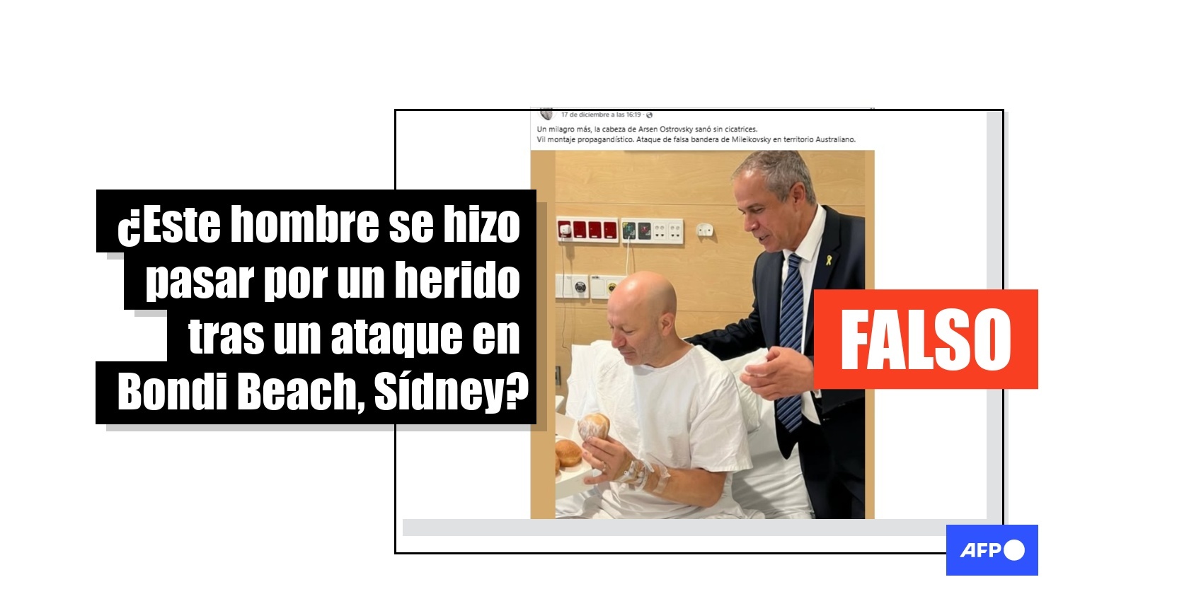El tiroteo durante una festividad hebrea en la playa de Bondi, en Sídney, Australia, dejó 15 muertos y decenas de heridos el 14 de diciembre de 2025. Desde ese entonces, decenas de usuarios en redes sociales aseguran que el ataque fue un montaje y un “engaño”. Para probarlo, compartieron decenas de veces una foto que supuestamente muestra a uno de los afectados en un hospital sin heridas. Pero la imagen, que utiliza la figura de un herido tras el tiroteo, fue alterada con inteligencia artificial.