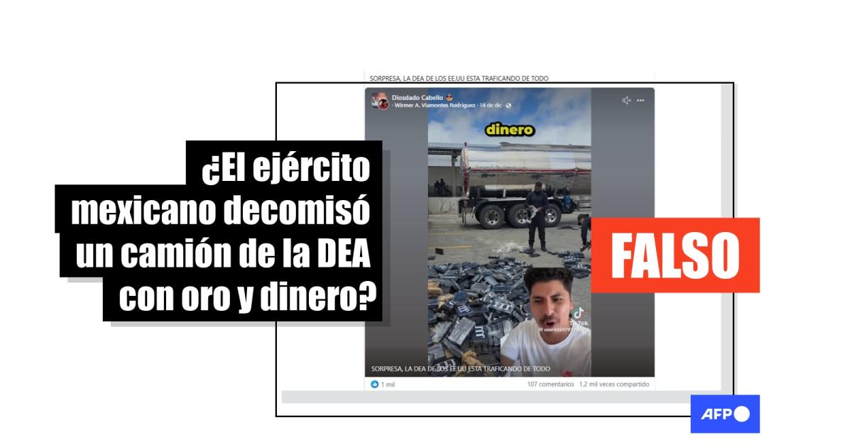 “El ejército mexicano le acaba de pegar duro golpe a la DEA de los Estados Unidos”, asegura un video compartido en TikTok, y continúa: “Se los agarraron con las manos en la masa ya que acaban de anunciar que el Ejército mexicano y la Guardia Nacional han detenido varios camiones blindados que pertenecen a la Agencia Antidrogas de los Estados Unidos, pero vaya sorpresa que se llevaron cuando les revisaron los camiones a la DEA de los Estados Unidos. Venían repletos de oro y dinero, puro dinero sucio”.